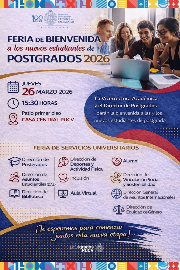 Con el objetivo de recibir e integrar a quienes inician su formación académica, la Dirección de Postgrados de la Pontificia Universidad Católica de Valparaíso realizará la Feria de Bienvenida a los nuevos estudiantes de Postgrados 2026.
